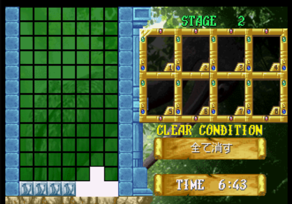 As with all puzzle games of this type, the key is how quickly it can push you into the flow state we all crave, and how well it can hold you there, oblivious to anything other than the 7 by 13 grid before your eyes. At least for myself, the answer is almost instantly. The tame starting patterns allow you to feel like you are controlling order, quickly attuning your brain to planning screen clears and measured play. As it ramps up, your brain is already in the space and focuses ever sharper to keep up until it all becomes too much. The thing with that is, well, it can get out of control VERY fast. It’s much harder to read the board state if you get into panic mode than purely colour-matching or line-making examples of this genre, and without knowing exactly what you’re aiming to close off, you’ll scramble to hit a target you just sailed past, the next piece swiftly following into its wake, and with an air of inevitability, you rocket off the top of the stage and have to put another 100 yen in the coin slot Every now and then though, you’ll read it properly, recover and feel like a pharaoh yourself – until the next wave, that is.